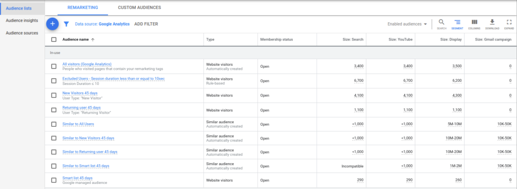 3. Check if you have imported your remarketing audience lists from Google Analytics to respective Google Ads account.