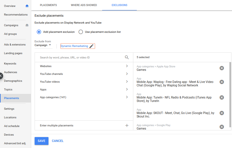 7. Negative Placements – The option to exclude placements in Google Ads for Display Remarketing Ads should be used wisely. You can control ad placement of remarketing ads according to our business.