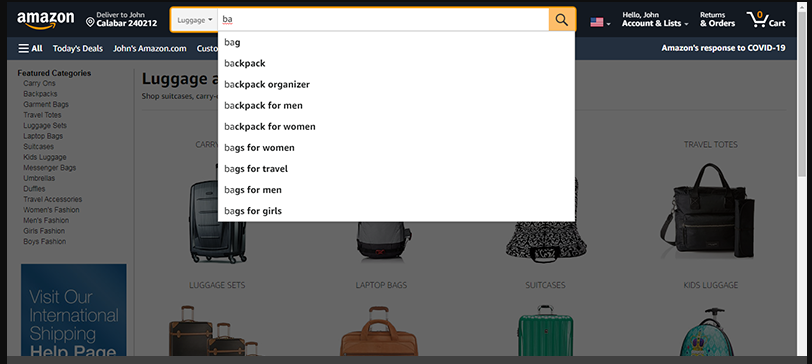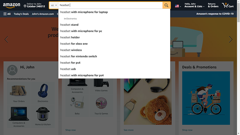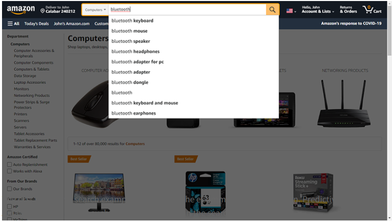 It’s ideal to go with this Amazon example – highlight the predictive search term and keep the text typed by the customer plain.