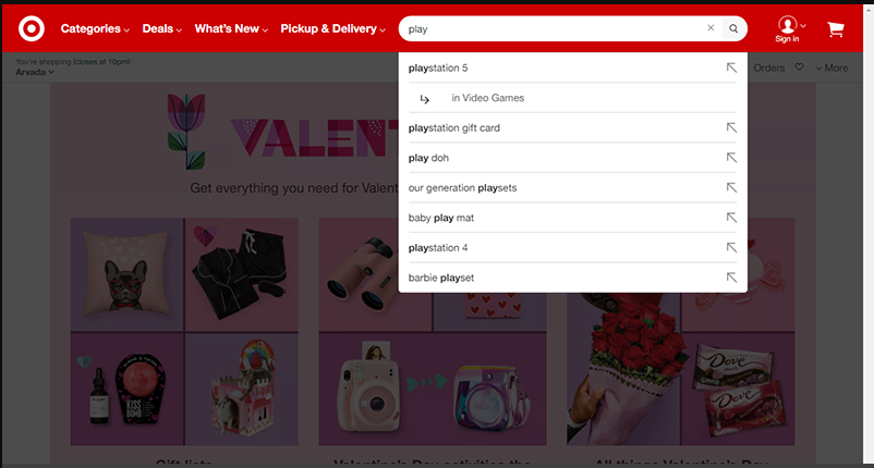 On Target, once a customer clicks on the search box, five trending search keywords are featured.