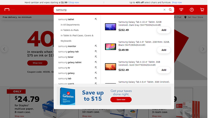 Notwithstanding, the featured categories should be limited just like on Staples; the search prediction result shouldn’t list out all categories on your eCommerce store.